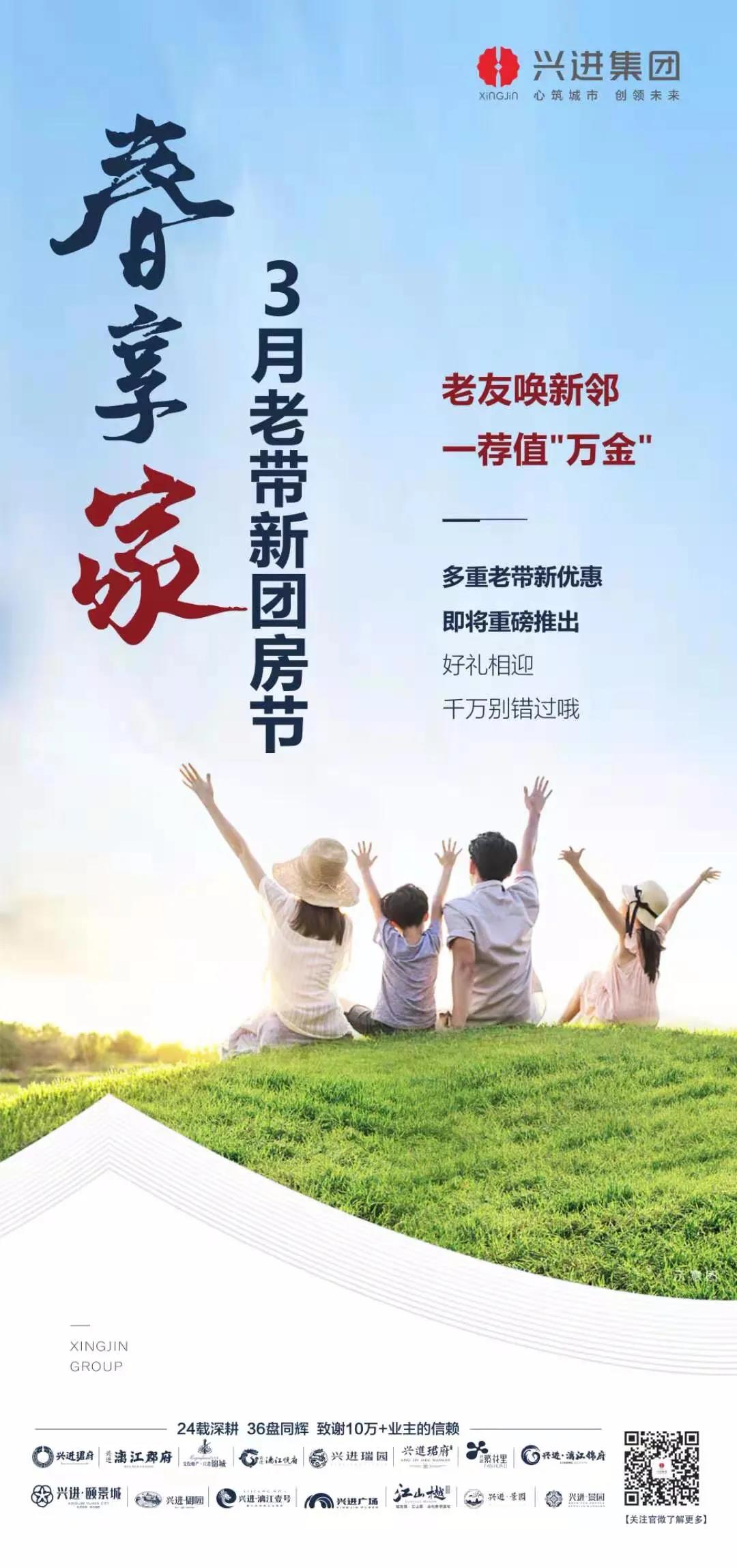 無論城市如何變遷,無論歲月如何更替,別讓曾經的親密無間,變成朋友圈的點贊之交,老友變新鄰,知心的人在身邊,生活的滋味總會多彩起來。興進集團暖心推出【春享家·3月老帶新團房節】,老友喚新鄰,一薦值萬金。讓友情突破空間的距離,讓"串門"變成生活里的趣味常態,以多重老帶新優惠,讓在一起的幸福感加倍!