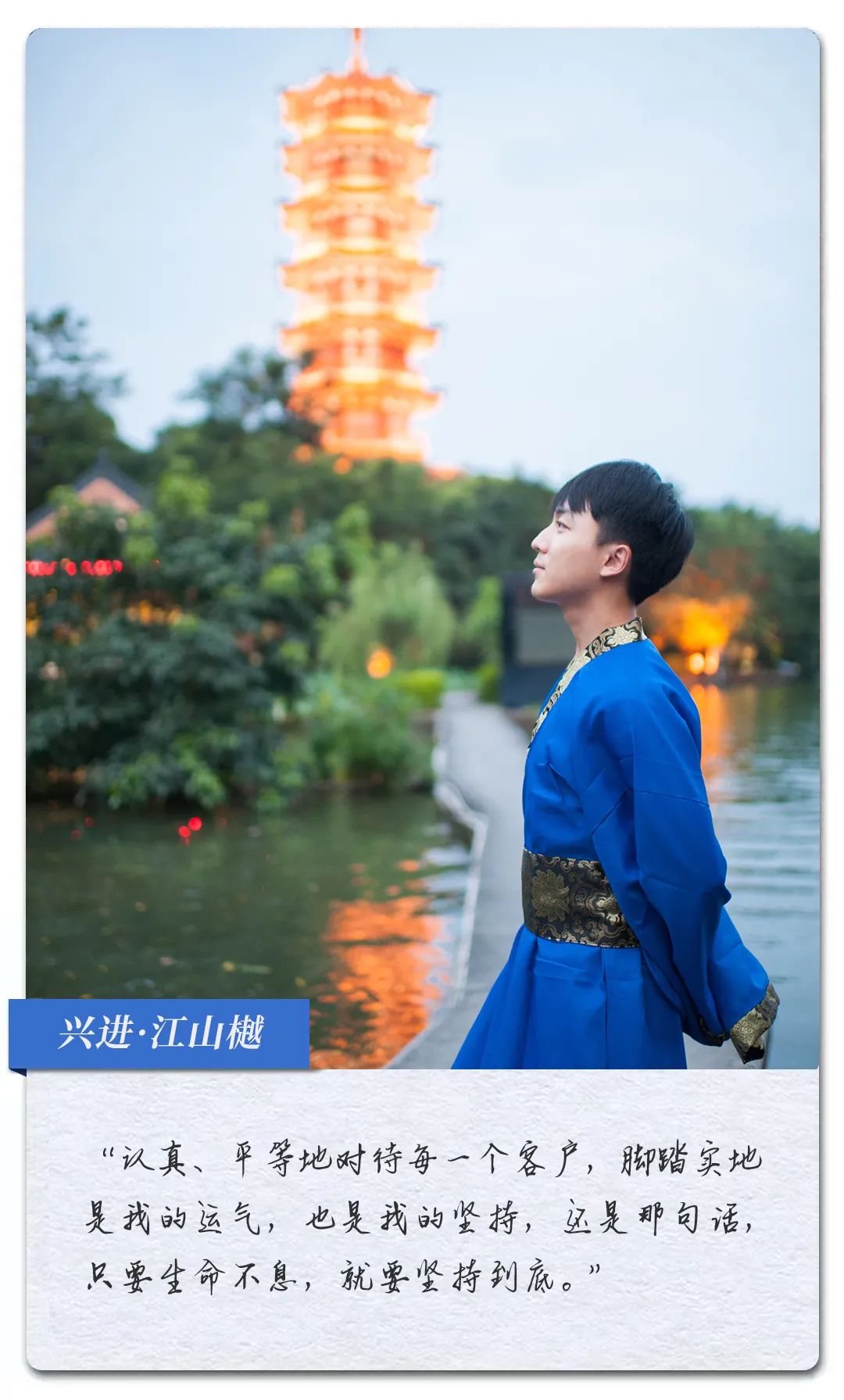 在來興進之前我是做導游的,除了工作,平時沒事就喜歡看書,希望通過知識來充盈自身,現在的同事都戲稱我是一個"詩人"。