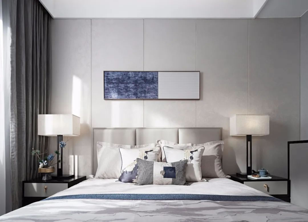 主臥丨浮白在空間的氣場流動中貫穿始終,是布景的竹韻水墨,是壁畫的儀式色彩,是靜物的多維神韻,在東方韻律的表達和秩序的營造中既柔和又秀美,帶著傳統形態的載
