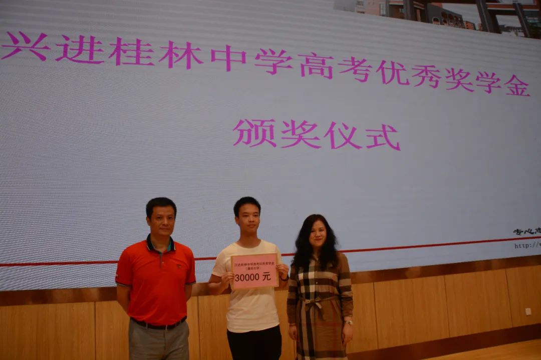 每年開學典禮上,"興進獎學金"、"國強獎學金"頒發的一幕,早已成為桂林中學學子們激動人心的一幕,激勵他們像學長一樣優秀有為,并懷著感恩之心去回饋社會、反哺社會。