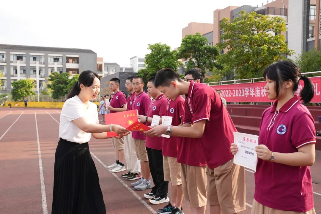 2022年8月29日上午,興進集團副總裁羅捷出席桂林中學高中部開學典禮,并為2021-2022學年優秀學生頒發"興進獎學金"、"國強獎學金",共計2.3萬元。