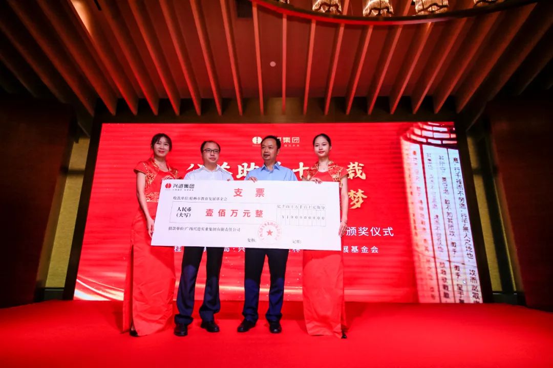 2019年,興進集團還專門為桂林中學設立為期十年的"高考獎教金",激勵考取北京大學、清華大學的優秀學生及教師團隊,其中30%獎勵考取北大清華的優秀學子,70%獎勵教師團隊。